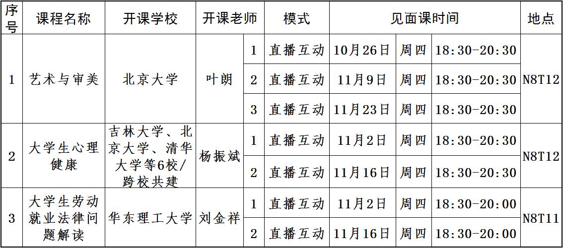 二、见面课时间和地点